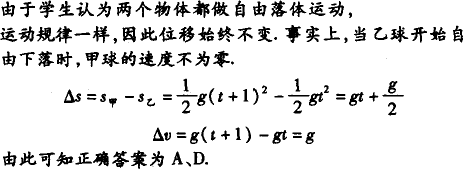 甲、乙两球从同一高处相隔1 s先后自由下落,在下落过程中( )