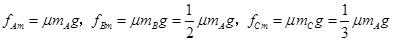 试题分析:A、B、C三个物体的角速度相同,设角速度为ω,则三个物体受到的静摩擦力分别为
