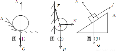 请在下面各图中画出处于静止状态的物体A所受到作用力的示意图: .