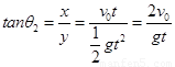 点评:解决本题的关键掌握处理平抛运动的方法,平抛运动在水平方向上做匀速直线运动,在竖直方向上做自由落体运动.以及知道速度与水平方向夹角的正切值是同一位置位移与水平方向夹角的正切值的两倍.