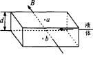 导电液体经过磁场时,在洛仑兹力的作用下,正离子向下偏转,负离子向上偏转,在管内液体的上表面积累负电荷,下表面积累正电荷,产生一个方向竖直向上的电场,形成一个相互垂直的电场和磁场的复合场.进入这个复合场的正、负离子不仅受洛仑兹力,同时还受与洛仑兹力相反方向的电场力作用,当两者平衡时,进入的离子匀速通过管子,不再发生偏转,此时a、b两点间的电势差U保持恒定. 由以上分析可知,a、b间保持恒定电势差U时应满足:q×