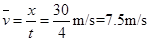 | C.在0~4s内,物体的平均速率为7.5m/s |
