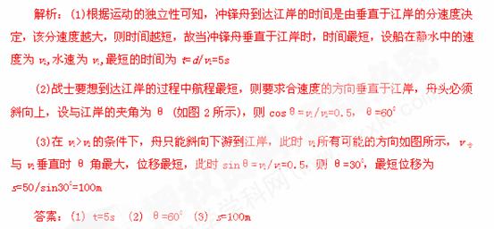 (2)战士要想通过最短的航程将人送上岸,冲锋舟的驾驶员应将舟头与河岸成多少度角开?