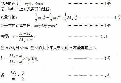 (II)物块从A上滑下后又冲上B,若要保证物块离开B后不能追上A,则B与物块的质量比M2/m应满足什么条件。