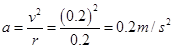 一物体在水平面内沿半径0.2m的圆形轨道做匀速圆周运动,线速度为0.2 m/s,那么,它的转速为 r/s; 它的向心加速度为 m/s2