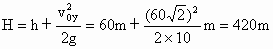 如图所示,一门大炮置于一山崖边,炮口距地面高度为h=60m,以45°的仰角发射一颗炮弹,炮弹的初速度