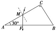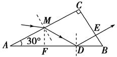 的入射角从AC边的中点M射入棱镜。求光线从棱镜射出点的位置?(不考虑光线沿原来路返回的情况)。