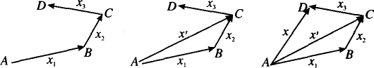 运动质点沿折线从A到B(位移为x1)、B到C(位移为x2)、C到D(位移为x3)运动,求出合位移x,并由此总结出求多个矢量的合矢量的一般方法.