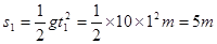 点评:本题难度较小,自由落体运动是初速度为零的匀加速直线运动,熟记公式带入即可