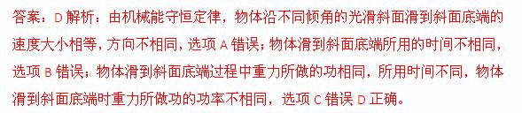 (2013安徽江南十校摸底)如图所示,一高度为h的楔形物块固定在水平地面上,质量为m的物体由静止开始从倾角分别为α、β的两个光滑斜面的顶端滑下,则下列说法中正确的是 ( )