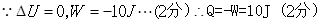 (2)状态A变化到状态B过程中,对外界做的功为10 J,求该过程中气体吸收的热量.![]()
