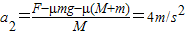 【答案】分析:(1)分别对木板和木块进行受力分析,根据牛顿第二定律即可求解加速度;