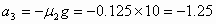 当速度等于10 m/s时动摩擦因素为0.125,分别在AB段与BC段两处, 在AB段时加速度为 在BC段时加速度为 |