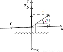 在水平方向有Fcosα-f=ma,