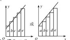 在“利用打点计时器测定匀加速直线运动加速度”的实验中,打点计时器接在50HZ的低压交变电源上.某同学在打出的纸带上每5点取一个计数点,共取了A、B、C、D、E、F六个计数点(每相邻两个计数点间的四个点未画出).从每一个计数点处将纸带剪开分成五段(分别为a、b、c、d、e段),将这五段纸带由短到长紧靠但不重叠地粘在xoy坐标系中,如图所示,由此可以得到一条表示v-t关系的图线,从而求出加速度的大小.
