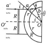 r的球形空心球壳,一束平行光射向此半球的外表面,光线与中心对称轴OO’平行,试求: