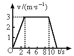 矿井里的升降机从静止开始做匀加速直线运动,上升3s,速度达到3m/s,然后匀速上升6s,最后减速上升2s停下.求升降机上升的高度,并画出升降机运动的v-t图象.