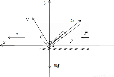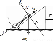 如图所示,在倾角为θ的光滑斜劈P的斜面上有两个用轻质弹簧相连的物块A、B,C为一垂直固定在斜面上的挡板.A、B质量均为m,斜面连同挡板的质量为M,弹簧的劲度系数为k,系统静止于光滑水平面.现开始用一水平恒力F作用于P,(重力加速度为g)下列说法中正确的是( )A.若F=0,挡板受到B物块的压力为2mgsinθ