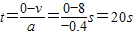 解答:解:刹车后速度随时间变化的关系为v=(8-0.4t)m/s,