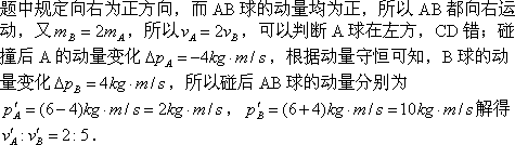 C.右方是A球,碰撞后A、B两球速度大小之比为2∶5