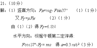 (2)撤去F后,物体还能滑行多长时间?(sin37°="0.6 " cos37°="0.8 " g="10" m/s2) ![]()