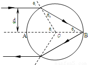(2)首先画出光路图,根据对称性得知θ1=2θ2 ,结合折射定律即可求出入射角θ1和折射角θ2.再根据几何知识求入射光线离AB的距离.