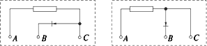 把一只电阻和一只半导体二极管串联,装在盒子里,盒子外面只露出三个接线柱A、B、C.如图所示,今用多用电表的欧姆挡进行测量,测量的阻值如下表所示,试在虚线框内画出盒内元件的符号和电路.
