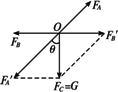 以O为研究对象,O点受到拉力FA、FB和大小为G的拉力Fc作用,处于平衡状态.根据力的作用效果可将拉力Fc分解为 当FA=10 N时,FB=7.07 N>5 N.由此可知,FB首先达到最大值. BO绳拉力刚好达到最大值时,FB=5 N, 则此时物重为mg=TC=FBcot45°=5 N 所以,为使细线不被拉断,重物G的最大值为5 N.
