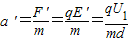 改变两极板的极性后,质子在竖直方向上的加速度: