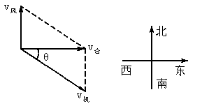 飞机在航空测量时,它的航线要严格地从西到东,如果飞机的速度为80km/h,风从南面吹来,风的速度为40km/h,那么: