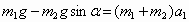 解:设A的质量为m1.B的质量为m2 第一次,A悬空,B放在斜面上,将A.B看成整体,由牛顿第二定律有 设斜面的长度为L,依题意有 第二次,将A和B位置互换,使B悬空,A放在斜面上,同理有 由以上4式得到: |