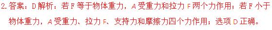 (2012年2月济南检测)如图所示,物体A在竖直向上的拉力F的作用下能静止在斜面上,关于A受力的个数,下列说法中正确的是