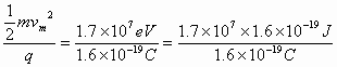 =4.8×107 C/kg即q=1.6×10-9 C,m=3.3×10-27 kg)