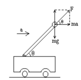 如图, 一根轻杆, 左端以铰链固定在车上, 右端系一小球, 当车以向右的加速度a运动时, 轻杆和车的夹角θ为[ ]
