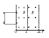 如图所示,一有界区域内,存在着磁感应强度大小均为B,方向分别垂直于光滑水平桌面向下和向上的匀强磁场,磁场宽度均为L,边长为L的正方形框abcd的bc边紧靠磁场边缘置于桌面上,使线框从静止开始沿x轴正方向匀加速通过磁场区域,若以逆时针方向为电流的正方向,能反映线框中感应电流变化规律的是图( )