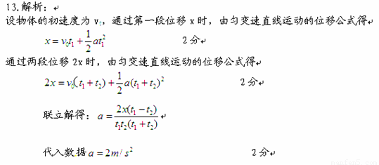 一物体作匀加速直线运动,在2s内通过的位移为6m,在紧接着的1s内通过的位移也为6m。求物体运动的加速度的大小。