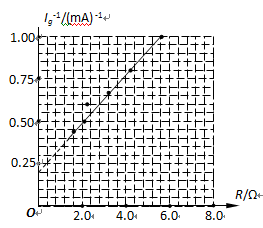 ,取图线上与纵轴相交的点和最后一个点,两点的纵轴截距为0.80(mA-1),转化为国际单位为800(A-1),横轴截距为5.6Ω,根据图线知道斜率为