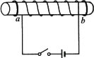 如图所示,一根光滑圆木棒的中部密绕若干匝线圈,并通过开关与电源相连,线圈两侧各套一个闭合的铝环a和b,在接通电路a的瞬间,两环的运动状态为a环向________移动,b环向________移动。![]()