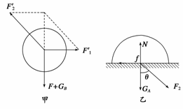 解析:B的受力如图1所示,因为F和G的方向始终在竖直方向,当F增大时,F1′、F2′都缓慢增大,F1′=F1,F2′=F2,所以F1、F2都缓慢增大.A物体受力如图乙所示.由图乙知F2sinθ=F3所以F3,缓慢增加 C对.