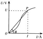 加在导体两端的电压U与通过导体的电流I的比值等于该导体的电阻R,即R=U/I.在温度恒定不变的条件下,金属导体的电阻是恒定的.因此,电压与电流强度的比值也是恒定的,对应的U—I图线是通过坐标原点的直线,直线的斜率就是电阻.灯泡的电阻随着所加电压的升高而增大,即电阻不是恒定不变的.对应的U—I线不是直线.当所加电压为U时,灯泡电阻可以这样求,如下图所示:作一平行于I轴的直线,它与I轴的距离等于U.由这条直线与U—I图线交点P作对I轴的垂线,就得到在这个电压下通过灯泡的电流I.这样由R=