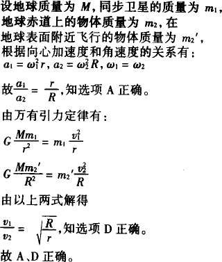 如图同步卫星离地心距离为r,运行速率为v1,加速度为a1,地球赤道上的物体随地球自转的向心加速度为a2,第一宇宙速度为v2,地球的半径为R,则下列比值正确的是