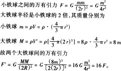 两大小相同的实心小铁球紧靠在一起,它们之间的万有引力为F,若两个半径是小铁球2倍的实心大铁球紧靠在一起,则它们之间的万有引力为