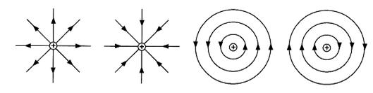 试题分析:正点电荷电场线应由正点电荷出发,终止于无限远,A对;B是负点电荷的电场线,B错;CD是直线电流的磁场线,CD错。