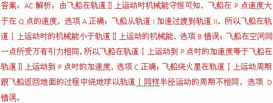 D、飞船绕火星在轨道Ⅰ上运动周期跟飞船返回地面的过程中绕地球以轨道Ⅰ同样半径运动的周期相同