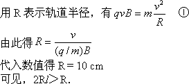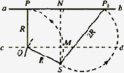 ¡¡¡¡¦ÁÁ£×Ó´øÕýµç£¬¹ÊÔڴų¡ÖÐÑØÄæÊ±Õë·½Ïò×öÔÈËÙÔ²ÖÜÔ˶¯£¬ ¡¡¡¡ ¡¡¡¡Òò³¯²»Í¬·½Ïò·¢ÉäµÄ¦ÁÁ£×ÓµÄÔ²¹ì¼£¶¼¹ý S£¬ÓÉ´Ë¿ÉÖª£¬Ä³Ò»Ô²¹ì¼£ÔÚͼÖÐN×ó²àÓëabÏàÇУ¬Ôò´ËÇеãP1¾ÍÊǦÁÁ£×ÓÄÜ´òÖеÄ×ó²à×îÔ¶µã£®Îª¶¨³öP1µãµÄλÖ㬿É×÷ƽÐÐÓÚabµÄÖ±Ïßcd£¬cdµ½abµÄ¾àÀëΪR£¬ÒÔ SΪԲÐÄ£¬RΪ°ë¾¶£¬×÷»¡½»cdÓÚQµã£¬¹ýQ×÷abµÄ´¹Ïߣ¬ËüÓëabµÄ½»µã¼´ÎªP1£®¡¡¡¡ ¡¡¡¡ÔÙ¿¼ÂÇ NµÄÓҲ࣮ÈκΦÁÁ£×ÓÔÚÔ˶¯ÖÐÀë SµÄ¾àÀë²»¿ÉÄܳ¬¹ý2R£¬ÒÔ2RΪ°ë¾¶¡¢SΪԲÐÄ×÷Ô²£¬½»abÓÚNÓÒ²àµÄP2µã£¬´Ë¼´ÓÒ²àÄÜ´òµ½µÄ×îÔ¶µã£®¡¡¡¡ÓÉͼÖм¸ºÎ¹ØÏµµÃ ¡¡¡¡ ¡¡¡¡ËùÇ󳤶ÈΪ P1P2£½NP1£«NP2¡¡¢Ü¡¡¡¡´úÈëÊýÖµµÃ P1P2£½20 cm¡¡¢Ý