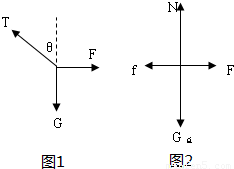 ½â£ºÒÔÖØÎïΪÑо¿¶ÔÏ󣬷ÖÎöÊÜÁ¦Çé¿ö£ºÖØÁ¦G¡¢Ë®Æ½Á¦FºÍÉþ×ÓµÄÀÁ¦T£¬Èçͼ1Ëùʾ£®ÓÉÆ½ºâÌõ¼þµÃ£º