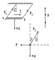 由①②解得:F=mgtanα, 即棒所受的磁场力F为mgtanα. |