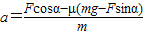 | A、F/m | B、Fcos α/m | C、(Fcos α-μmg)/m | D、[Fcos α-μ(mg-Fsin α)]/m |
