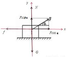 对木块受力分析如图所示,建立如图所示的坐标系,把F分解到坐标轴上.