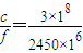 电磁波在真空中的传播速度大小为______m/s;某家庭用微波炉中使用的微波频率为2450MHz.它的波长为______m.